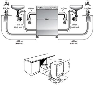 У разі, якщо посудомийна машина буде встановлюватися далеко від раковини, то що входить в комплект приєднувальних Хенкі для води може не вистачити. Тому потрібно буде придбати Хенку необхідної довжини.