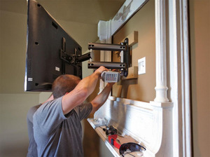Після вибору ТБ і кронштейнів, а також місця установки можна переходити безпосередньо до монтажу.Попередньо варто переконатися, що в стіні не проходять жодні комунікації, наприклад, електропроводка. Спочатку необхідно прикласти до стіни пластину кронштейна і намітити отвори. Важливо простежити, щоб вони розташовувалися строго в горизонтальній площині. В іншому випадку можливе падіння ТВ-приймача.