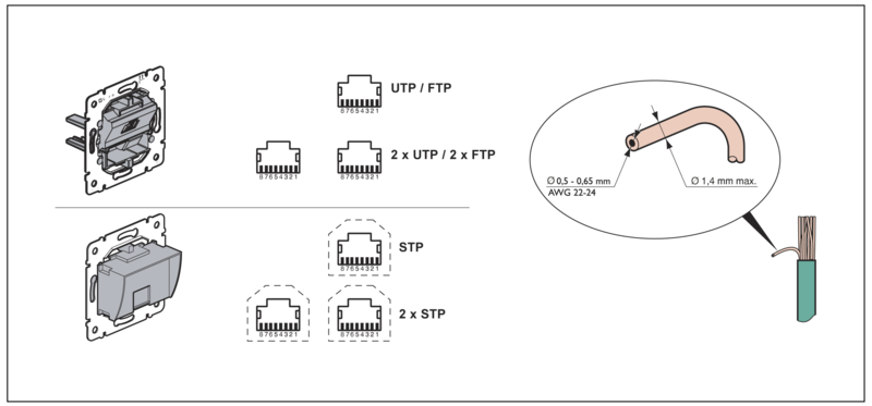 Розвиток сучасних інформаційних технологій вплинуло на те, що під час інсталяції ЛВС кабелі нижче, ніж UTP 5е практично ніде не використовуються. Щоб результат виконаних маніпуляцій повністю відповідав усім очікуванням, потрібно щоб категорія розетки була не меншою, ніж у під'єднується до неї дроти. В іншому випадку існує велика ймовірність, що швидкість передачі даних буде знижена в кілька разів.