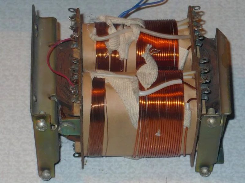 Обмотки є котушками з намотаним ізольованим проводом зі спеціальним лаковим покриттям. Діаметр дроту і кількість витків залежить від U і струму (I), а також це впливає і на P трансформатора. Кількість котушок повинно бути не менше 2, однак допускається одна котушка за умови, що на неї намотані 2 обмотки (одна з яких первинна).