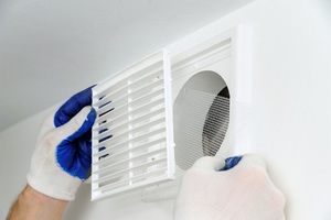 Просте рішення – це установка витяжного вентилятора у ванній кімнаті або туалеті на місці вентиляційних решіток в стіні. Спосіб монтажу не потребують будь-яких складних дій, єдине, знадобиться прокласти провід живлення. Але, крім цього, якщо габарити приміщення дозволяють, ефективно виконати систему витяжки можна на стелі.