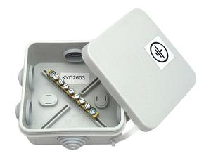 - Коробка вирівнювання потенціалів. Комплектується спеціальною клемної колодкою, що служить для комутації додаткових елементів, що мають струмопровідні властивості. Від кількості таких елементів залежить розмір КУП. Найчастіше коробка має стандартні габарити 100х100х50 мм.