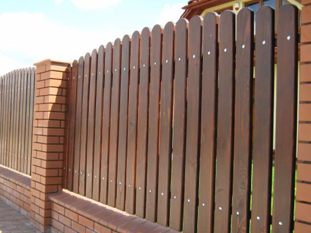 Потім стовпи можна забарвити або розкрити захисним засобом проти жучків і впливу вологи на деревину. Після цих підготовчих стадій можна приступати до найголовнішого – створення образу забору.